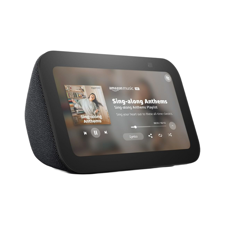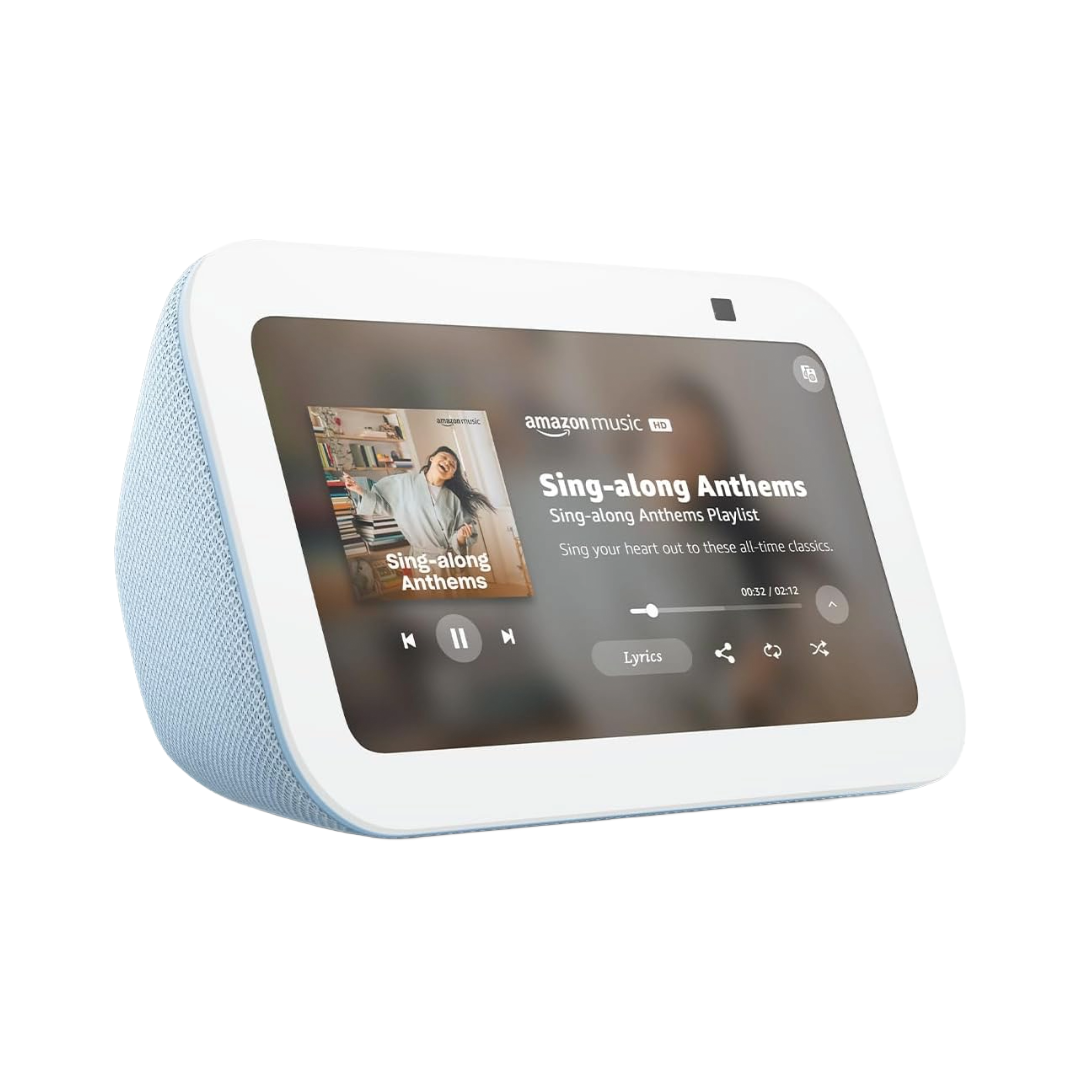 El Echo Show 5 incluye calidad de audio mejorada que emite voces más nítidas, graves más profundos y produce un sonido vibrante. Solo pídele a Alexa que ponga música, un pódcast, audiolibros o tus series favoritas para disfrutar de una experiencia de audio más dinámica.