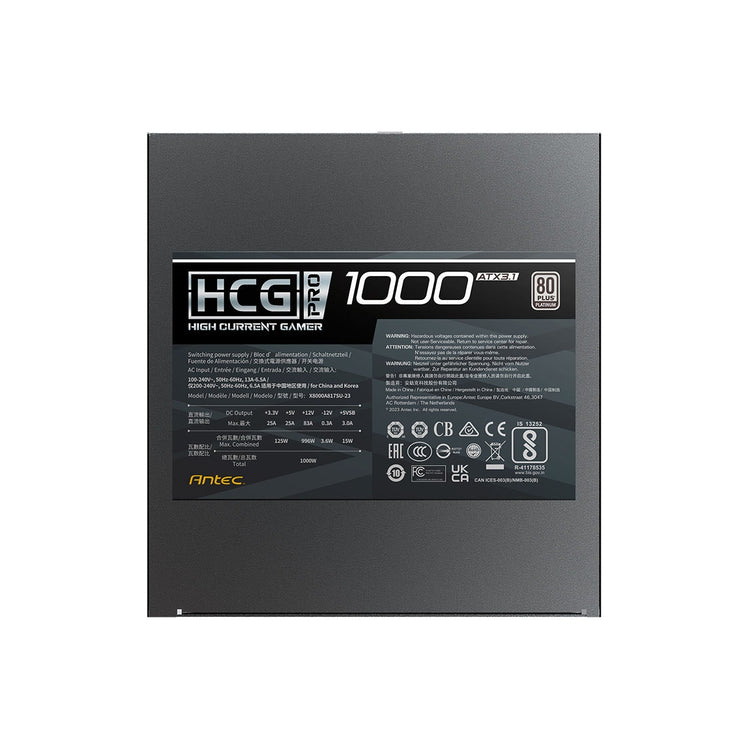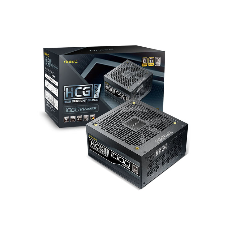 La Antec HCG1000 PRO Platinum ATX 3.1 es una fuente de poder de 1000 W con certificación 80 PLUS Platinum, diseño totalmente modular y compatibilidad con PCIe 5.1. Ofrece eficiencia energética, protección avanzada y refrigeración silenciosa, ideal para sistemas exigentes y builds