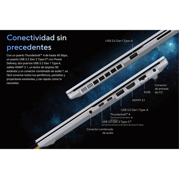 1x Thunderbolt™ 4 con soporte para pantalla/suministro de energía (velocidad de datos de hasta 40 Gbps)