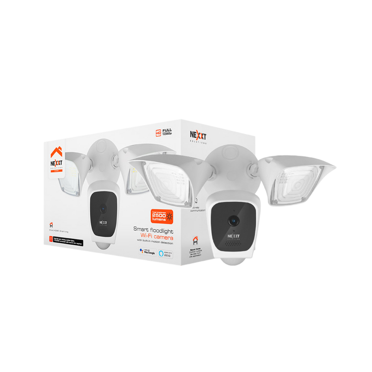 CÁMARA SMART WIFI NEXXT HD 150° EXTERIOR CON 2 REFLECTORES 2500 LUMENES