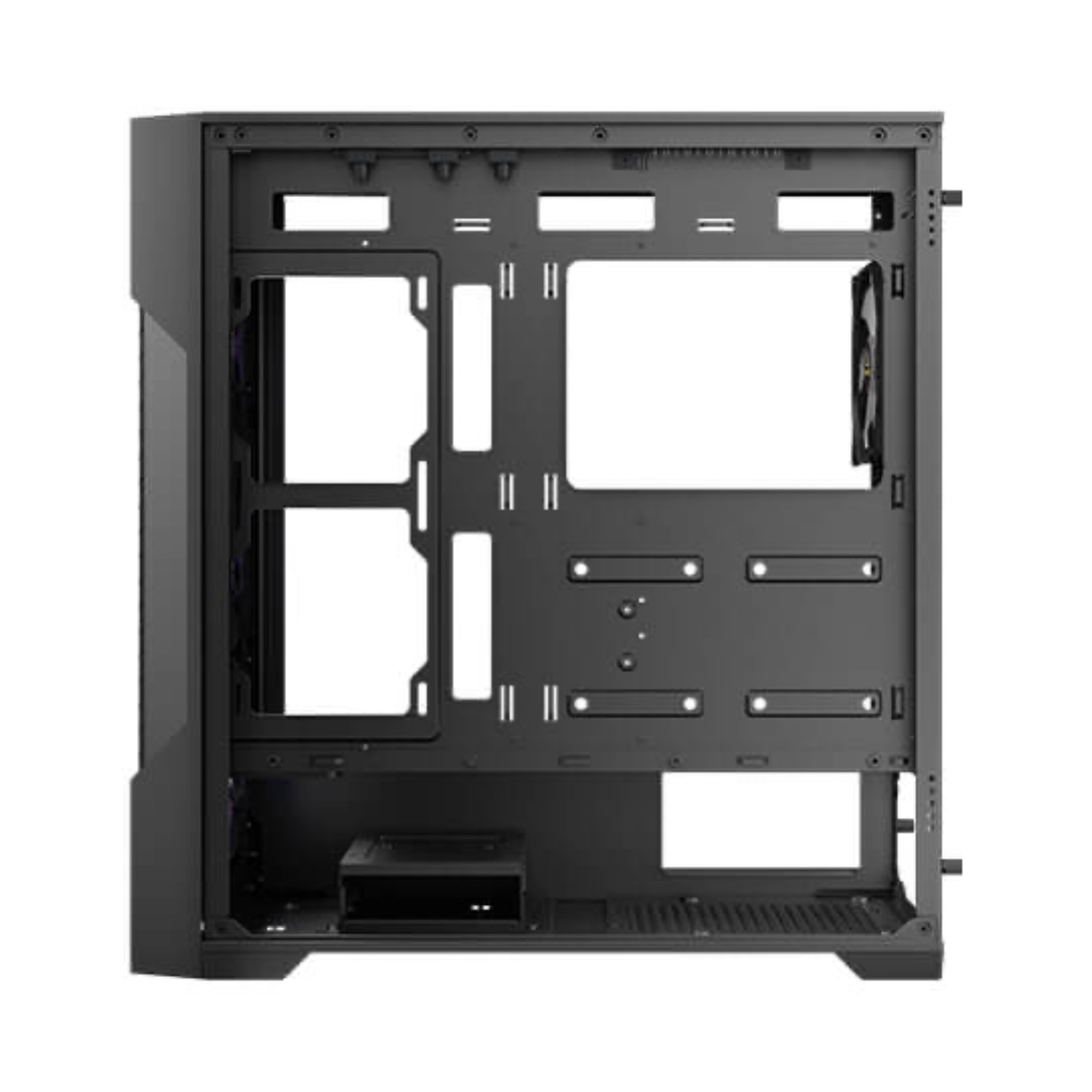El AX90 cuenta con un exclusivo diseño de panel frontal de malla y un excelente rendimiento de refrigeración. El diseño de panel lateral de vidrio templado de vista completa te permite exhibir tus configuraciones de juego sin ningún obstáculo. Se pueden instalar 11 ventiladores de 120 mm simultáneamente.
