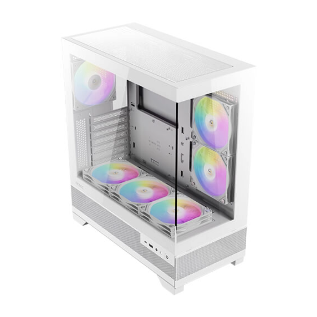 9 posiciones de ventilador con 5 ventiladores inversos preinstalados que brindan un excelente flujo de aire y atractivo estético.