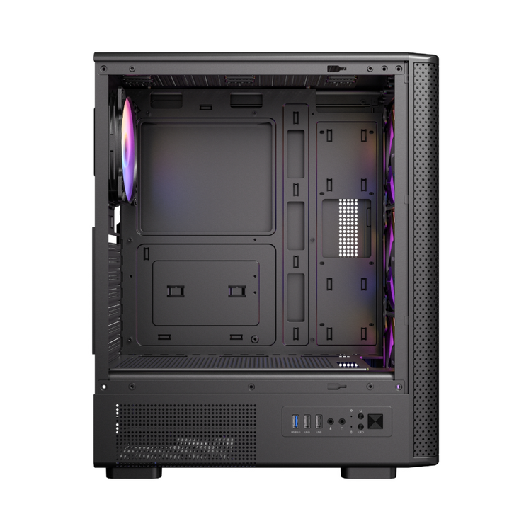 El chasis para PC gaming VX310 ARGB está diseñado pensando en la facilidad de uso. Disfruta de amplio espacio para componentes de alta gama y una gestión de cables sencilla, lo que garantiza un montaje limpio y organizado. El diseño sin herramientas y los puertos de E/S de fácil acceso simplifican el montaje y las actualizaciones del sistema, ahorrándote tiempo y esfuerzo. Compatible con múltiples bahías de unidades y ranuras de expansión, tu chasis se adapta fácilmente a tus necesidades cambiantes.