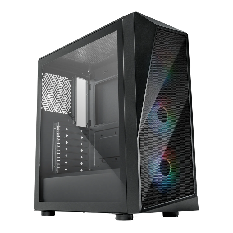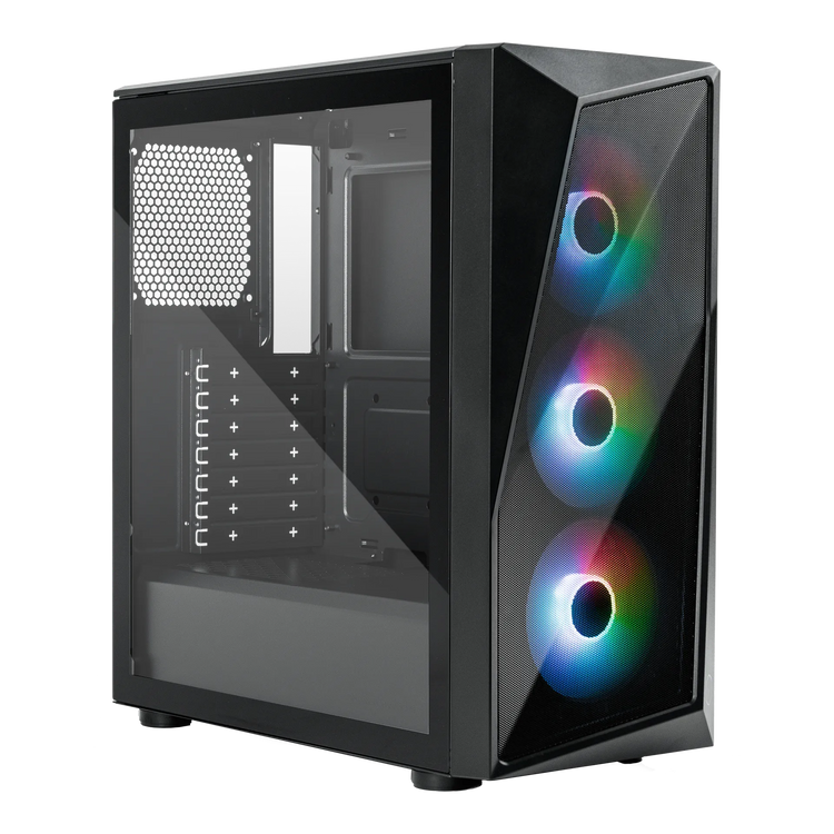 El diseño asimétrico del panel frontal del CMP 520 enmarca los tres ventiladores ARGB de 120 mm preinstalados como piezas centrales únicas del equipo.