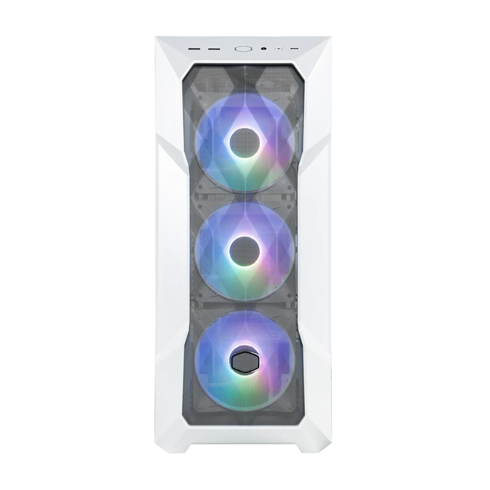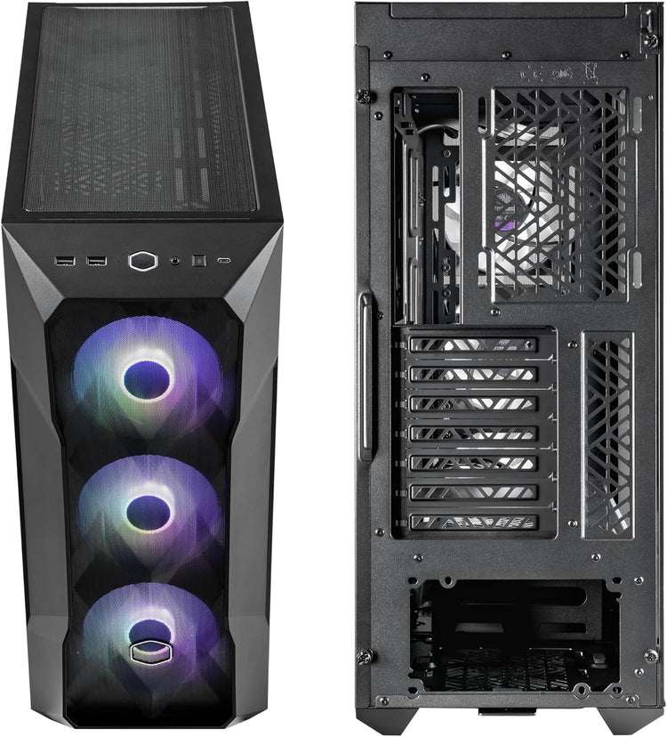 El icónico diseño poligonal de MasterBox TD500 Mesh V2 mantiene su sistema con un aspecto único y sus sesiones de juego optimizadas.