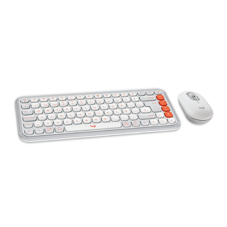 Las teclas suaves y de perfil bajo del teclado inalámbrico están diseñadas para una escritura precisa, cómoda y discreta. El contorno suave de POP Mouse se adapta perfectamente a la palma de la mano y la tecnología SilentTouch hace que cada clic sea silencioso.