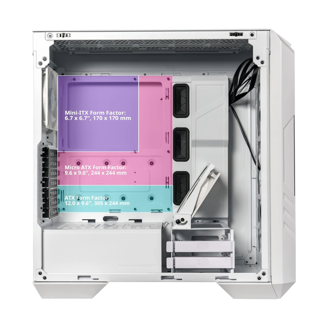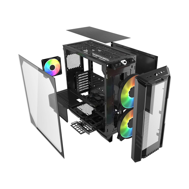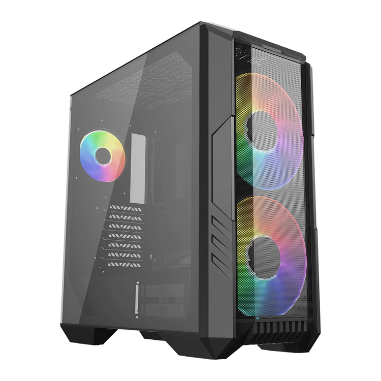 Diseñado para un alto flujo de aire y un rendimiento óptimo, el HAF 500 cuenta con icónicos ventiladores ARGB de entrada grande de 200 mm, que garantizan una eficiencia de entrada y refrigeración inigualable.