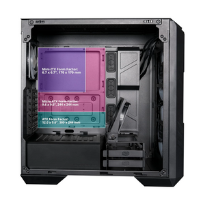 El chasis incluye un ventilador dedicado para la GPU, ajustable a diferentes longitudes de GPU. El amplio espacio para dos radiadores de 360 mm en el panel superior y frontal permite las configuraciones de refrigeración líquida más avanzadas.