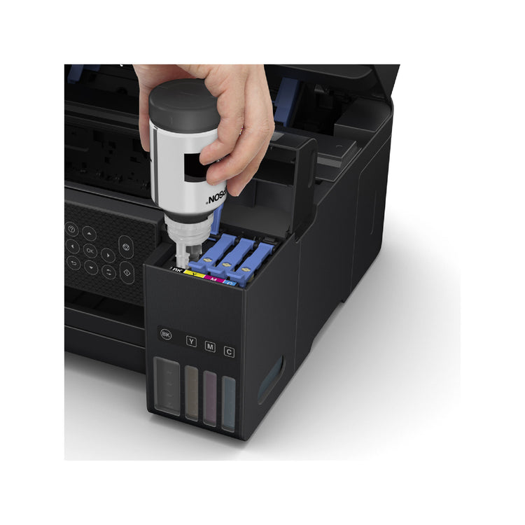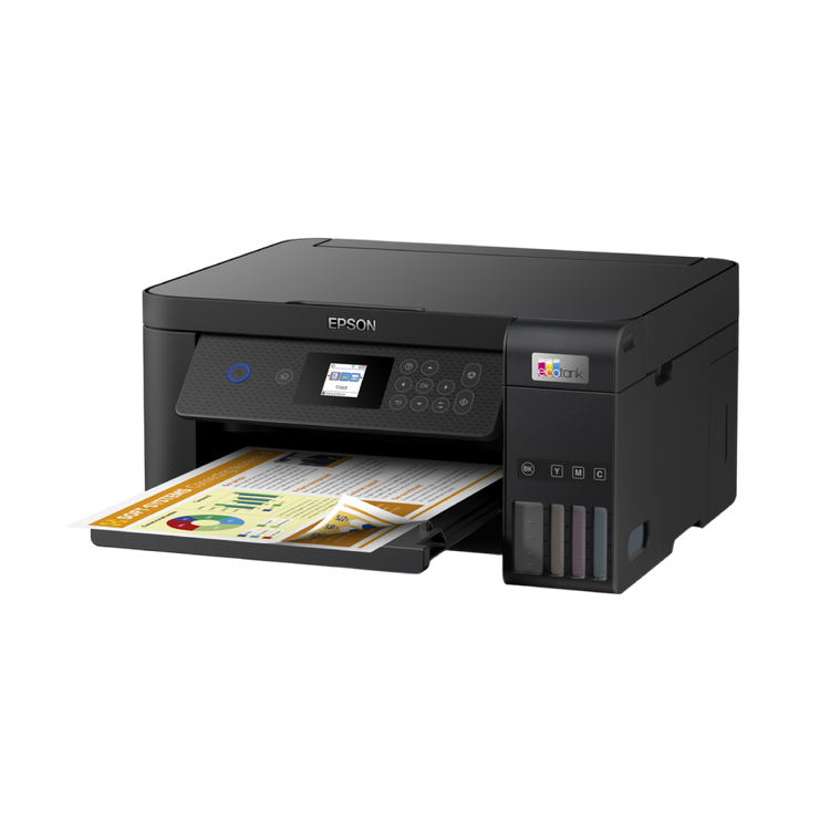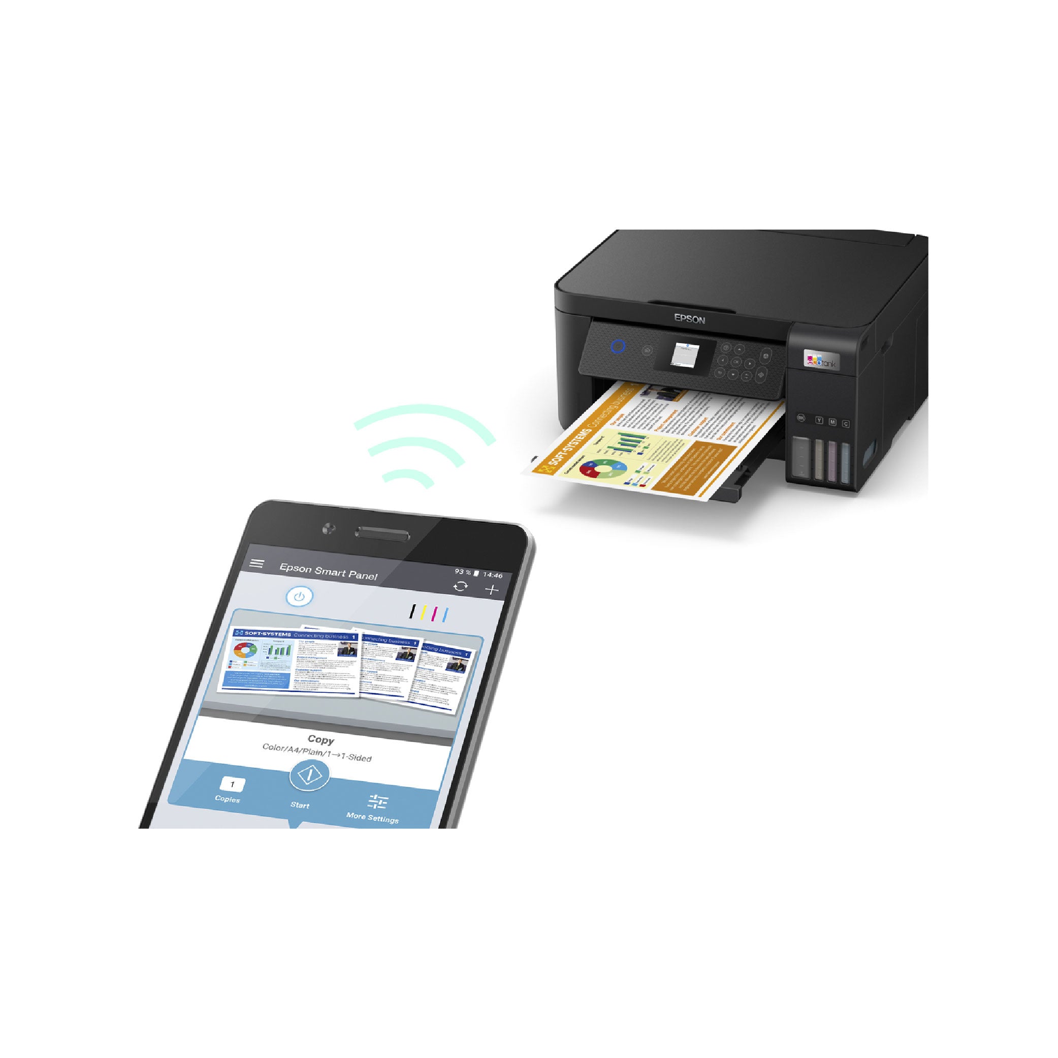 La impresora multifuncional 3 en 1 L4260 para emprendedores y pequeñas oficinas ofrece funciones de productividad a un precio asequible, como la tecnología de impresión a doble cara automática, conectividad Wi-Fi y compatible con la nueva aplicación Epson Smart Panel, para aprovechar toda la productividad de su impresora a través de sus dispositivos inteligentes.