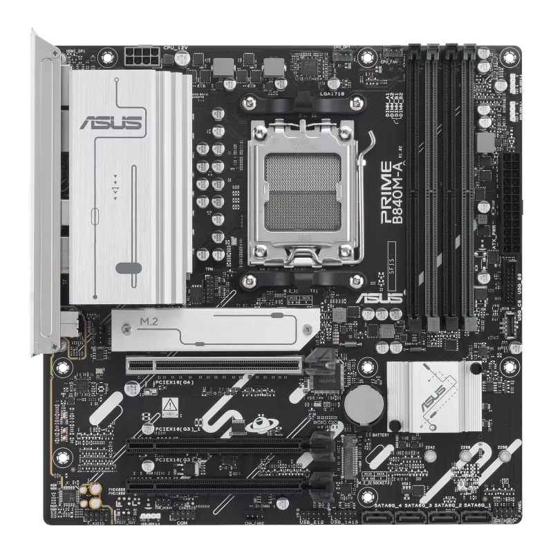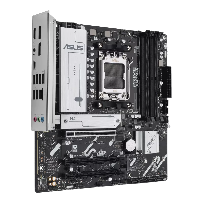 Las motherboards ASUS Prime series están diseñadas por expertos para liberar todo el potencial de los procesadores AMD Ryzen™ de la serie 9000. La motherboard PRIME B840M-A proporciona a los usuarios y a los ensambladores de PC DIY una gama de optimizaciones de rendimiento a través de funciones intuitivas de software y firmware. Está diseñada para ser Advanced AI PC-ready, ofreciendo la potencia y la conectividad necesarias para aplicaciones de IA exigentes.