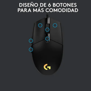 Un mouse para juegos disponible en una variedad de vibrantes colores. Con la tecnología LIGHTSYNC, un sensor para juegos y un diseño clásico de 6 botones, animarás tu acción y tu espacio.
