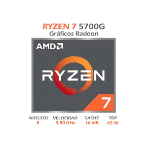 El AMD Ryzen 7 5700G es un procesador de alto rendimiento ideal para usuarios que buscan potencia profesional, eficiencia y gráficos integrados sin necesidad de una tarjeta gráfica dedicada.
