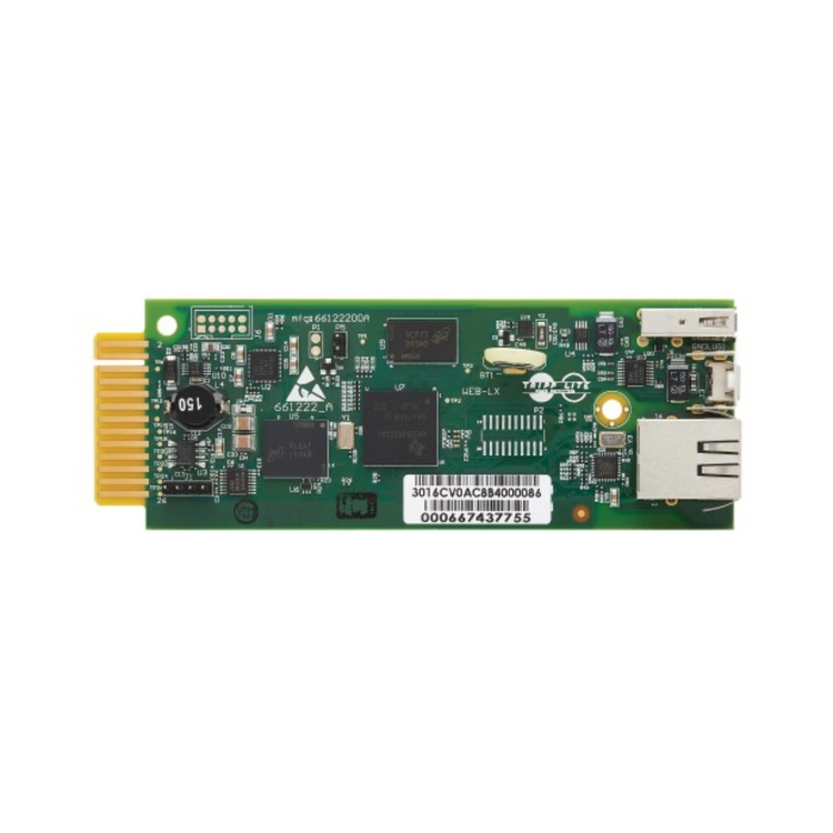 La tarjeta de red WEBCARDLXMINI convierte un sistema SAI compatible en un dispositivo gestionado en su red. Al insertarla en una ranura para accesorios y usar una plataforma de gestión de red SNMP, un navegador web, SSH o Telnet, puede supervisar, controlar y reiniciar el dispositivo prácticamente desde cualquier lugar y en cualquier momento. Su interfaz basada en HTML5 permite interactuar con el Administrador de dispositivos PowerAlert®, compatible con dispositivos móviles, sin necesidad de Java.